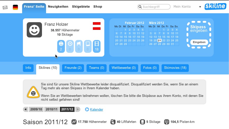 Einfach Skipass-Nummer auf „Skiline“ eingeben
